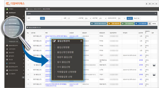 외부에서의 출입신청을 위한 전용접속 페이지 접속