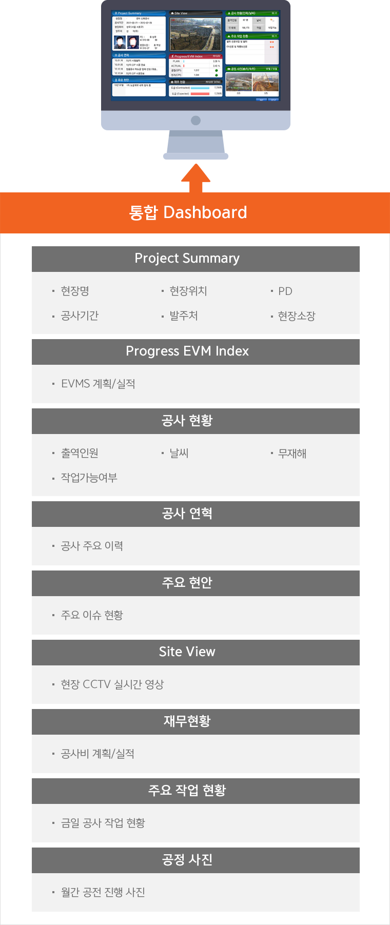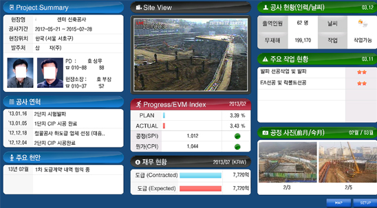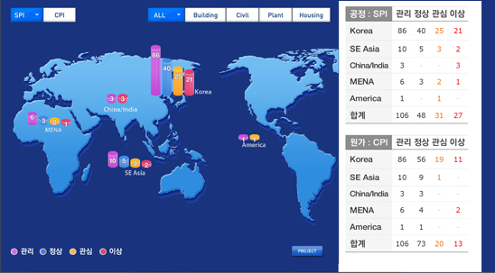 통합 Dashboard는 전 현장을 관리하는 의사결정자가 진행상황을 한눈에 파악하여