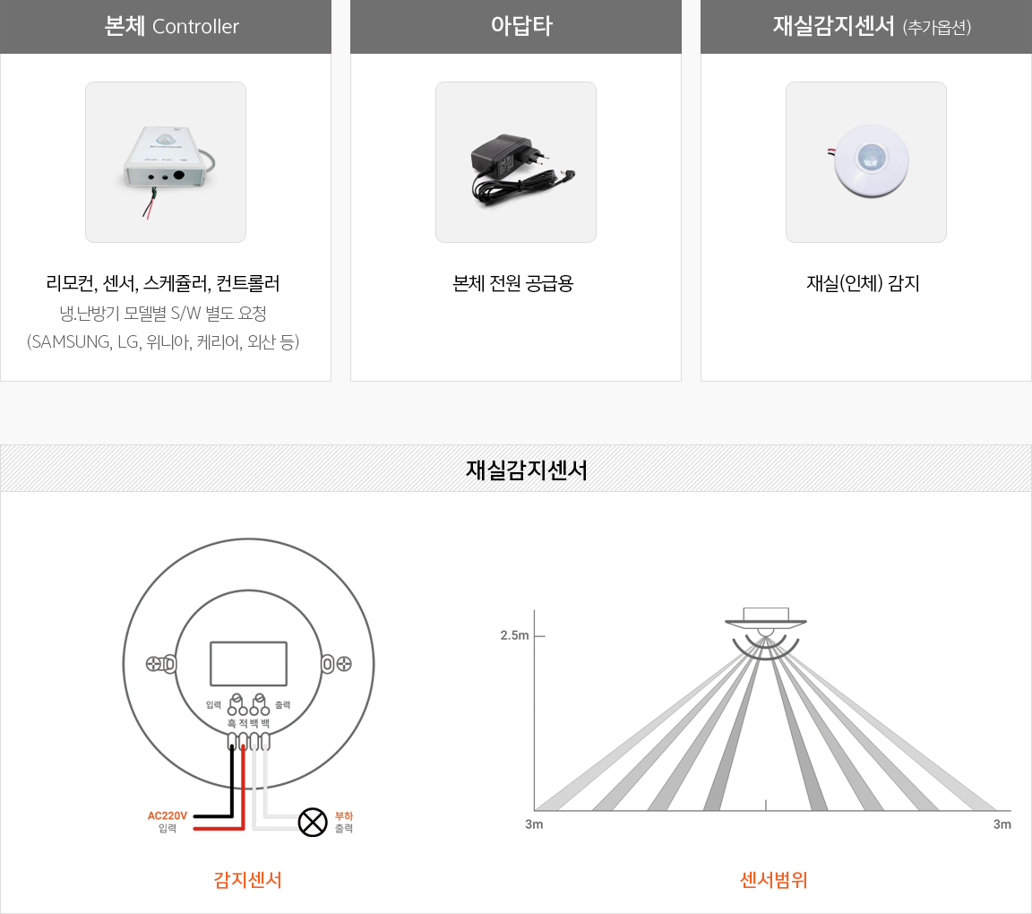 회의실 또는 사무실등의 공용공간에서 모든 근무자가 퇴실뒤에서 냉난방기가 켜져있는 상황을 방지하기 위해 일정기간 움직임이 없을 경우 자동으로 Off 시켜 전력 낭비를 방지합니다.